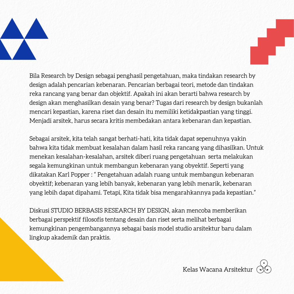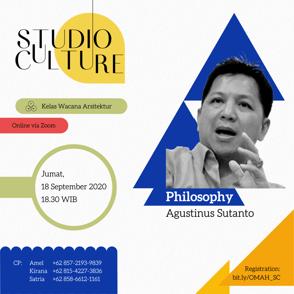 Sesi pertama dari rangkaian diskusi wacana arsitektur Studio Culture akan diisi oleh Agustinus Sutanto, dengan topik Filosofi dalam budaya studio..