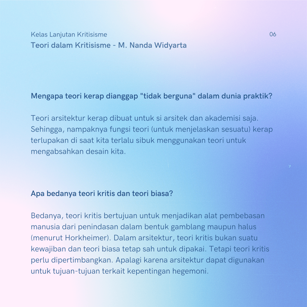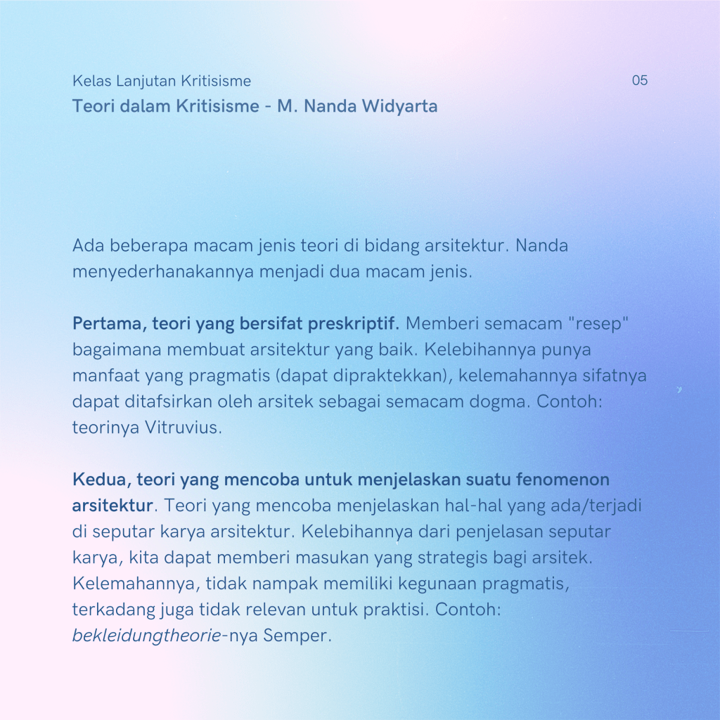 Wacana dari pak nanda memberi insights yg lbh mendalam ttg teori arsitektur 👍👍👍
