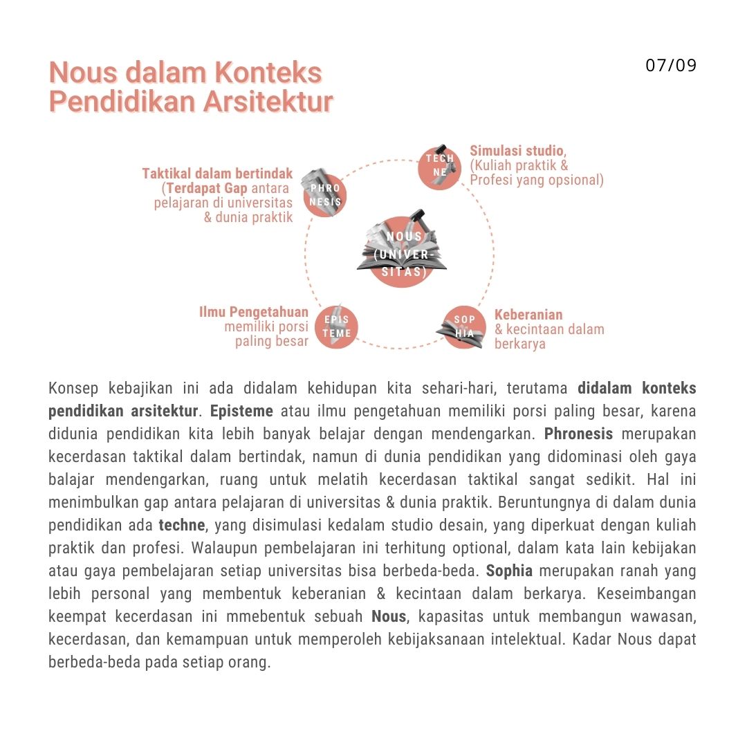 Materi dan pembahasan tentang Nous ini sangat membuka wawasan baru bagi kami mahasiswa dalam pola pikir berarsitektur. ini sangat penting sebagai menjadi pondasi pemikiran untuk menunjang topik2 selanjutnya yang akan dibahas. Pembahasan ini sangat menarik dan berpotensi menambah ilmu barul