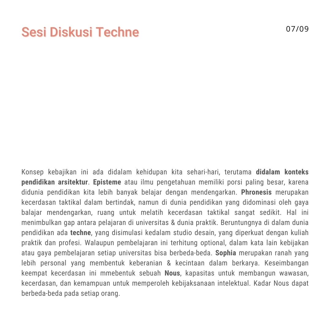 Keluasan wawasan pengetahuan dan berpikir. Menelusuri bagaimana batas mengenai “tahu” merupakan gelombang berpikir dalam tatar arsitektur yang berlaku saat ini.