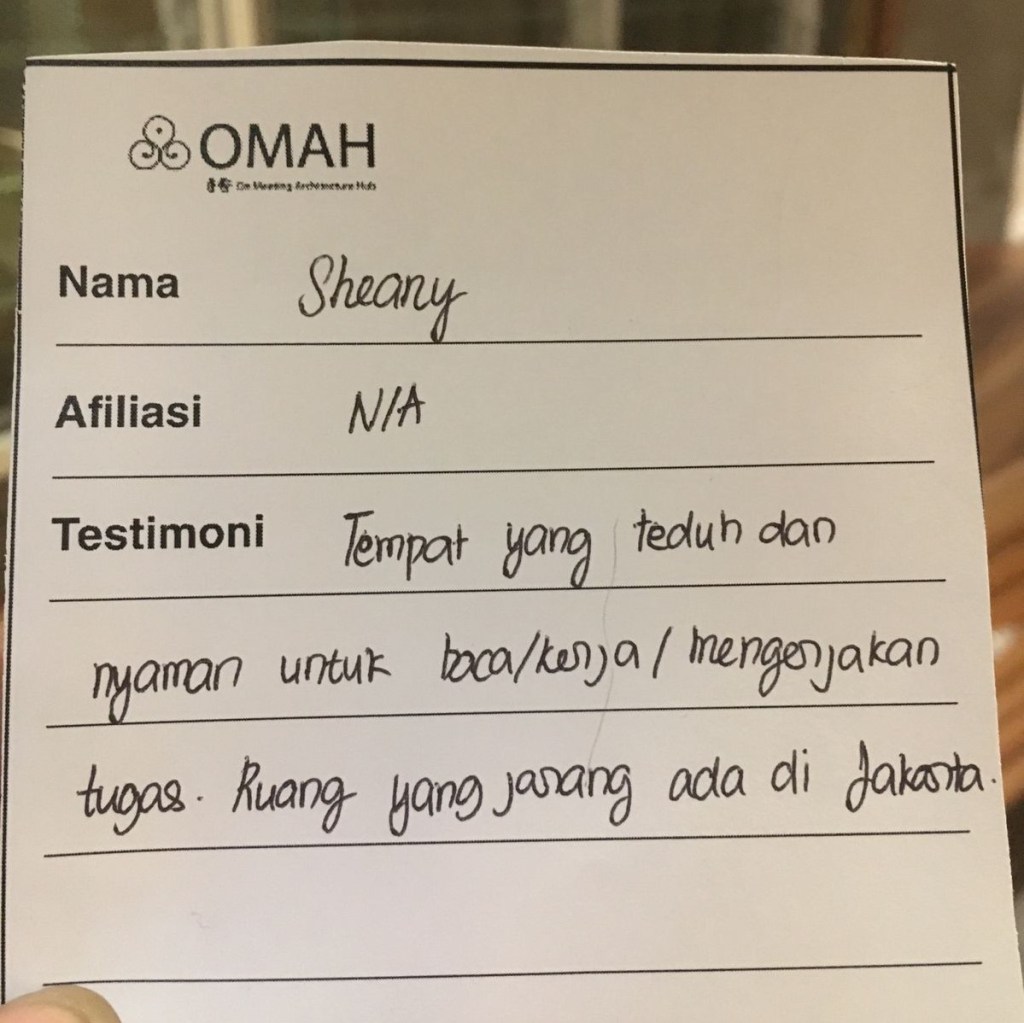 Tempat yang teduh dan nyaman untuk baca/kerja/mengerjakan tugas. Ruang yang jarang ada di Jakarta.