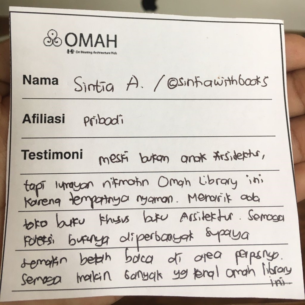 Meski bukan anak arsitektur, tapi lumayan nikmatin Omah library ini karena tempatnya nyaman. Menarik ada toko buku khusus arsitektur. Semoga koleksi bukunya diperbanyak supaya semakin betah baca di area perpusnya. Semoga semakin banyak yang kenal Omah Library ini.