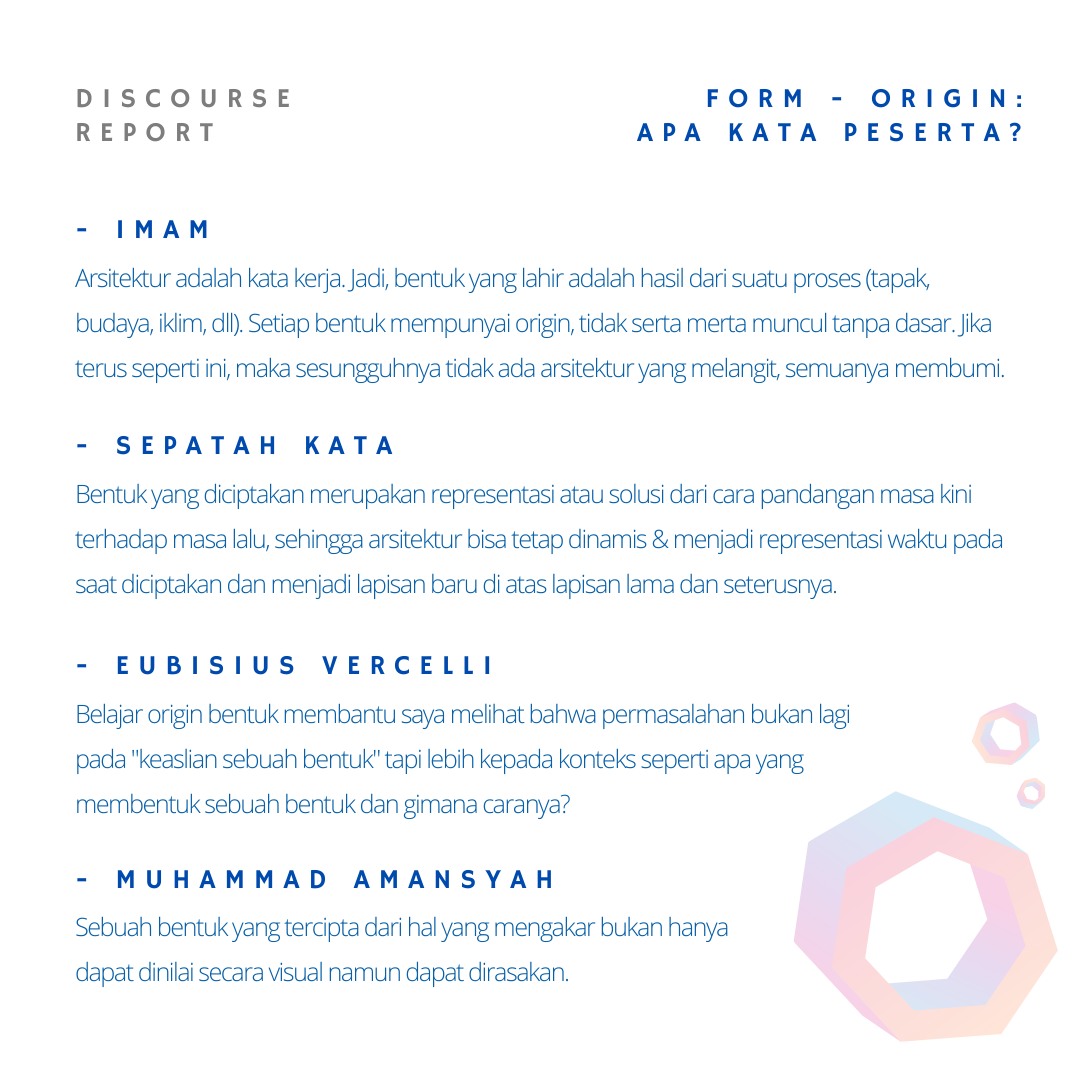Belajar origin bentuk membantu saya melihat bahwa permasalahan bukan lagi pada “keaslian sebuah bentuk” tapi lebih kepada konteks seperti apa yang membentuk sebuah bentuk dan gimana caranya?