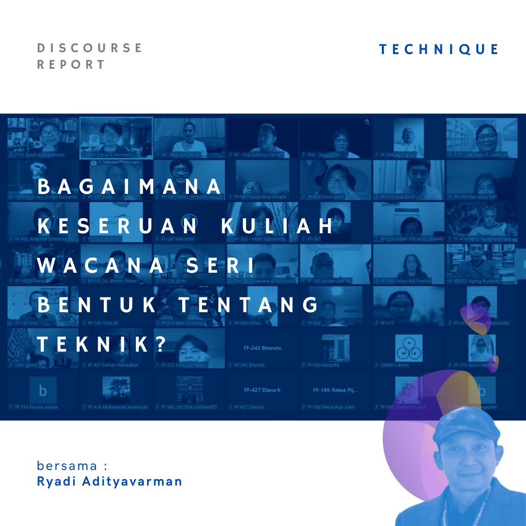 Berikut ini adalah transkrip diskusi yang terjadi pada saat berlangsungnya kelas wacana Form pada 11.08.2021, diisi oleh Ryadi Adityavarman, moderator: Realrich Sjarief, host: Satria A. Permana