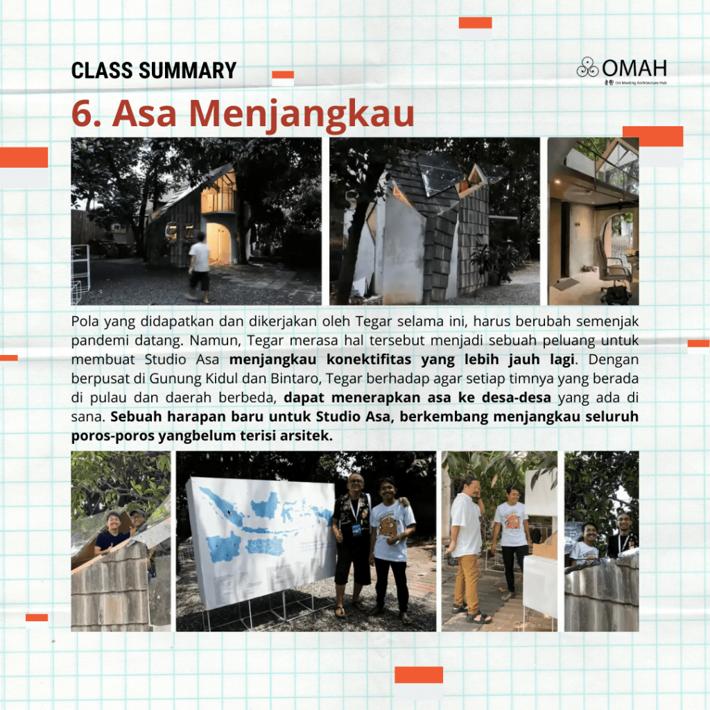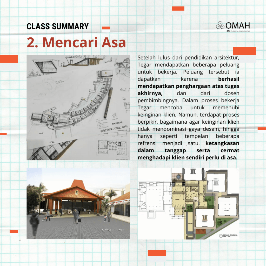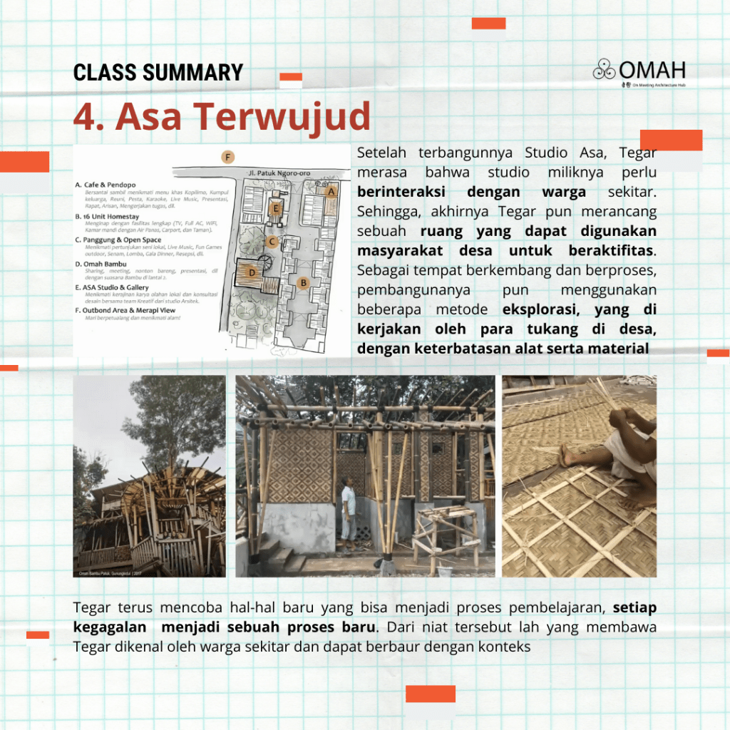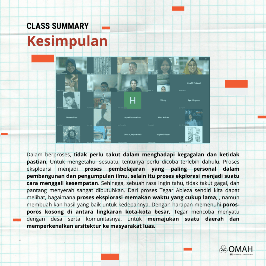OMAH Library melalui Dara(h) Muda percaya bahwa arsitek-arsitek Indonesia seyogyanya tidak terlibat di dalam arsitektur yang itu-itu saja, tetapi terus menembus batas peran, kemampuan, dan merefleksikannya untuk bisa memperbaiki ekosistem arsitektur Indonesia bersama-sama. Simak perjalanan suka duka Tegar dalam mewujudkan asa, baik asa dirinya sendiri, maupun komunitas desa, mulai dari level tetangga, kelurahan, kecamatan, sampai di level kabupaten.