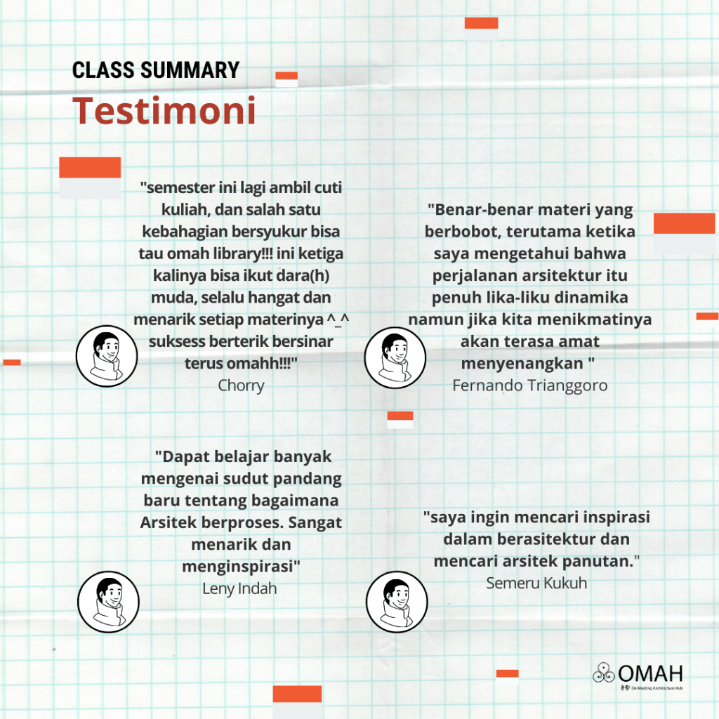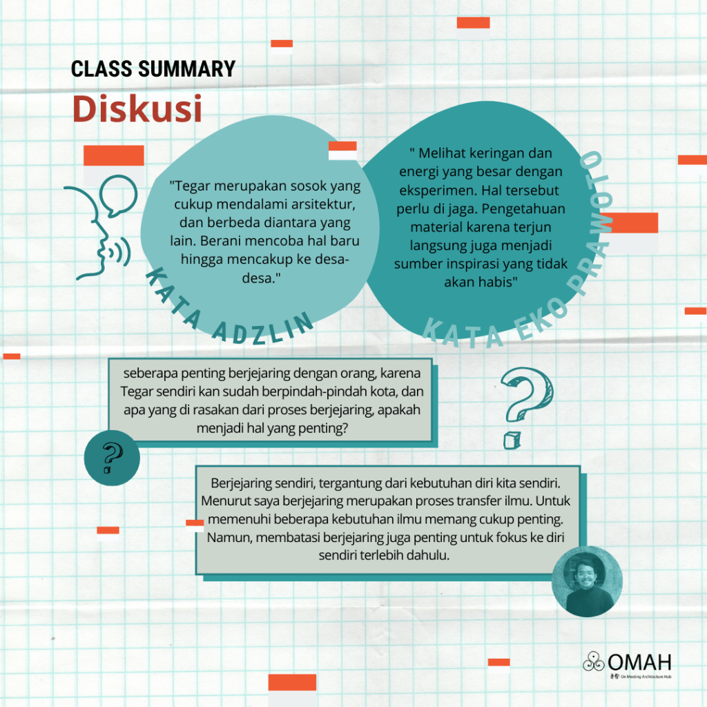 Omah Library mengajak untuk mendiskusikan proses pencarian peran dalam berarsitektur yang dijembatani oleh kisah seorang arsitek muda, Tegar Abieza.