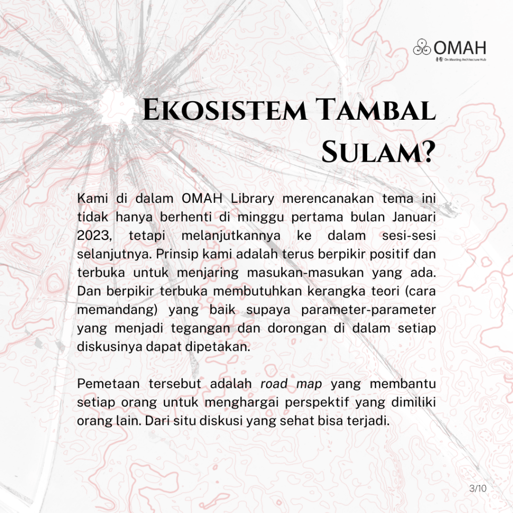 Kami di dalam OMAH Library merencanakan tema ini tidak hanya berhenti di minggu pertama bulan Januari 2023, tetapi melanjutkannya ke dalam sesi-sesi selanjutnya. Prinsip kami adalah terus berpikir positif dan terbuka untuk menjaring masukan-masukan yang ada. Dan berpikir terbuka membutuhkan kerangka teori (cara memandang) yang baik supaya parameter-parameter yang menjadi tegangan dan dorongan di dalam setiap diskusinya dapat dipetakan.