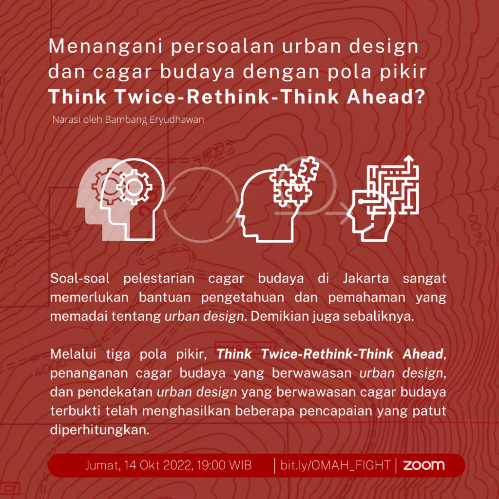 Dan bagaimana sesungguhnya topik cagar budaya dan urban design in saling berkaitan sehingga memerlukan pemahaman yang memadai. Pola pikir Think Twice-Rethink-Think Ahead dapat membantu menjelaskan bagaimana cagar budaya dan urban design dapat saling berkaitan dan memberikan pemahaman lebih luas untuk mendapatkan solusi strategis.