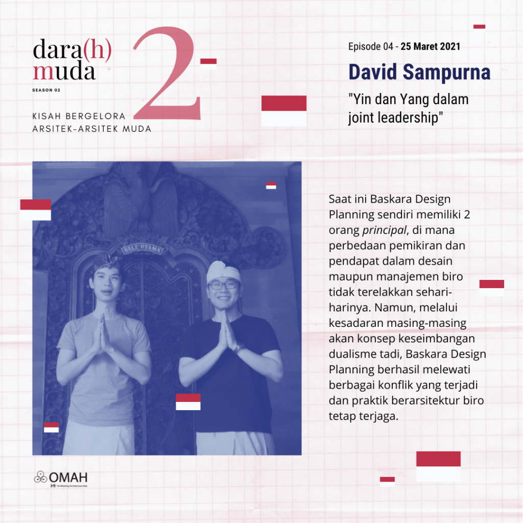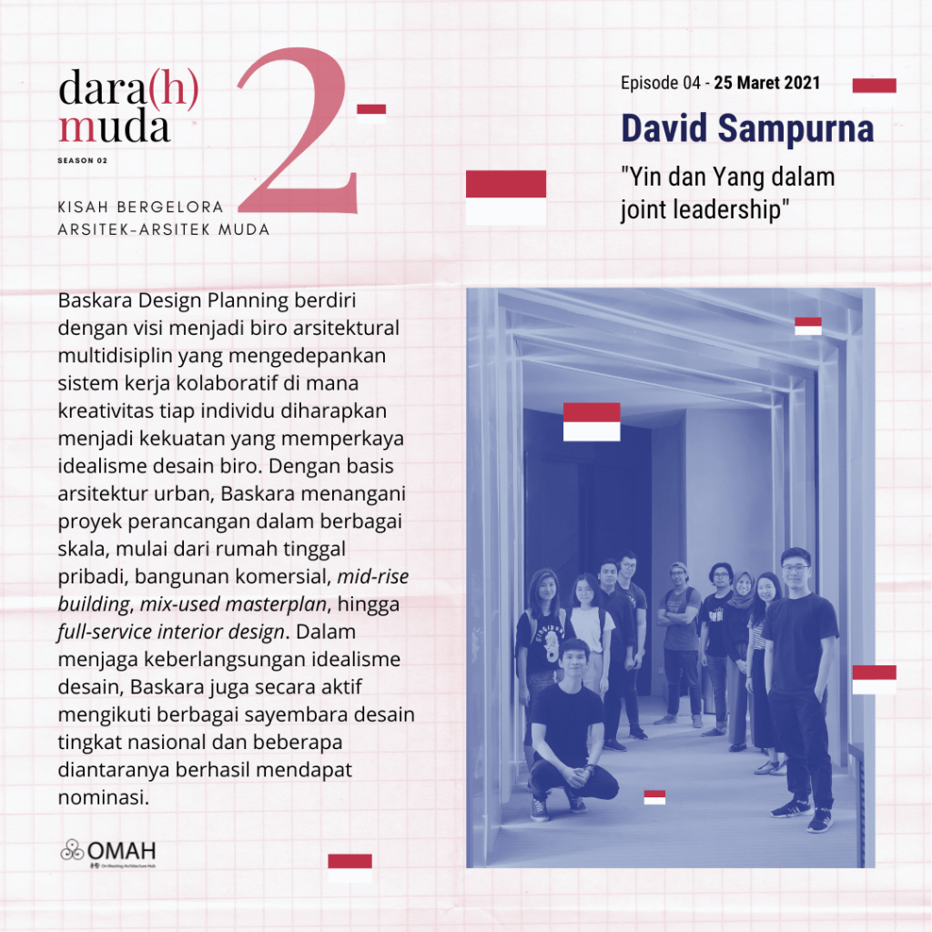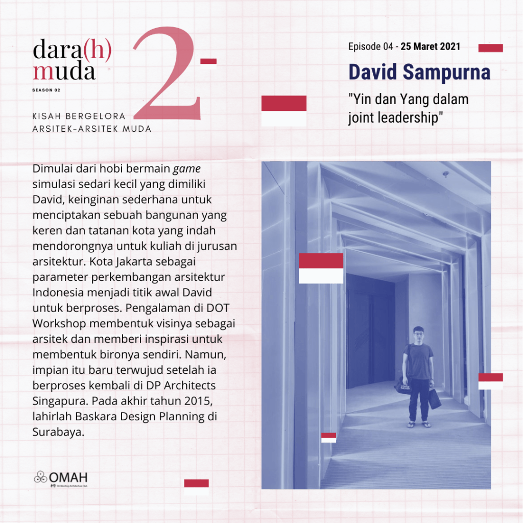 Kalau sudah mendengar bait ini, artinya telah tiba waktunya bagi kita untuk menyimak kembali kisah-kisah bergelora arsitek muda dalam season kedua Dara(h) Muda. . OMAH Library dengan bangga menyajikan enam episode di season ini ditemani arsitek-arsitek muda dengan kisah-kisahnya yang khas tentang praktik, studio, tantangan yang dihadapi dari setiap daerah, dan cita-untuk diskursus arsitektur yang kita cintai bersama-sama ini.