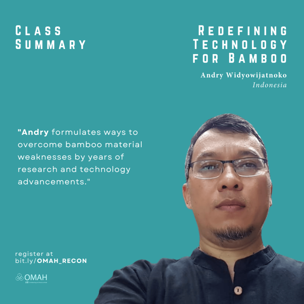 Andry Widyowijatnoko adalah seorang arsitek, pengajar, dan peneliti di Pusat Studi Teknologi Bangunan, SAPPK Institut Teknologi Bandung. Mempelajari bambu sejak menempuh pendidikan Master hingga Doktoral yang beliau bahas melalui thesis dan disertasinya. Bahkan sejak 1999, ketika ia meneliti metode konstruksi dinding bambu plester. Andry banyak mengajar dan membagikan keilmuanya tentang…