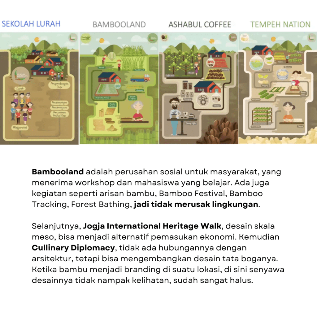 Program-program hasil pendekatan tersebut nantinya sebagai wadah untuk membangun senyawa desain di desa sehingga desa menjadi mandiri dan mengetahui potensi diri sendiri.