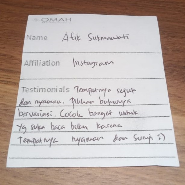 Tempatnya sejuk dan nyaman. Pilihan bukunya bervariasi, cocok banget untuk yang suka baca buku karena tempatnya nyaman dan sunyi:)