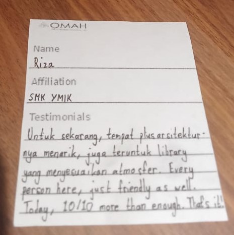 Tempatnya sangat adem dan tenang. Adminnya sangat ramah, arsitekturnya juga unik. Also, supprised there is a good library like this in unexpected place.