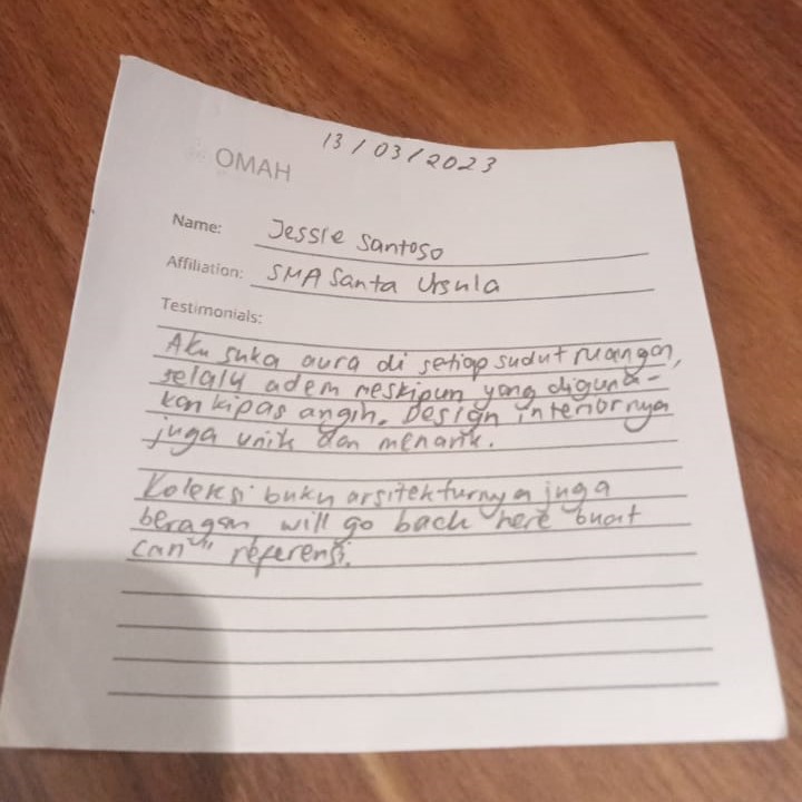 Aku suka aura di setiap sudut ruangnya, selalu adem meskipun yang digunakan kipas angin, design interiornya juga unik dan menarik. Koleksi buku arsitekturnya juga beragam, will go back here buat cari-cari refrensi.