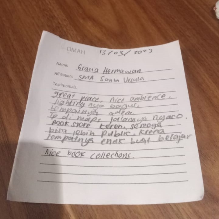 Great place, nice ambience, lightningnya bagus, tempatnya adem tapi di maps jalannya ngaco. Bookstore keren, semoga bisa lebih publik, karena tempatnya enak buat belajar. Nice book collection.