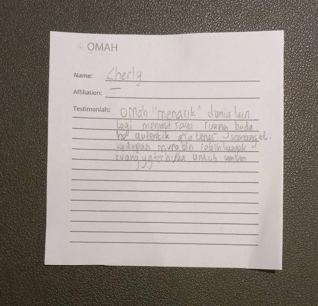 Omah “menarik” dunia lain lagi menurut saya. Ruang berbeda-beda, be autentik saja terus. Semangat kedepannya mungkin lebih banyak ruang yang terbuka untuk umum