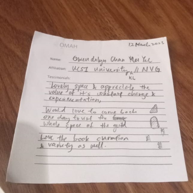 Lovely space & appreciate the value of it’s workspace, change & experimentation. Would love to come back one day to visit the whole space of the guild. Love the book curation & variety as well.