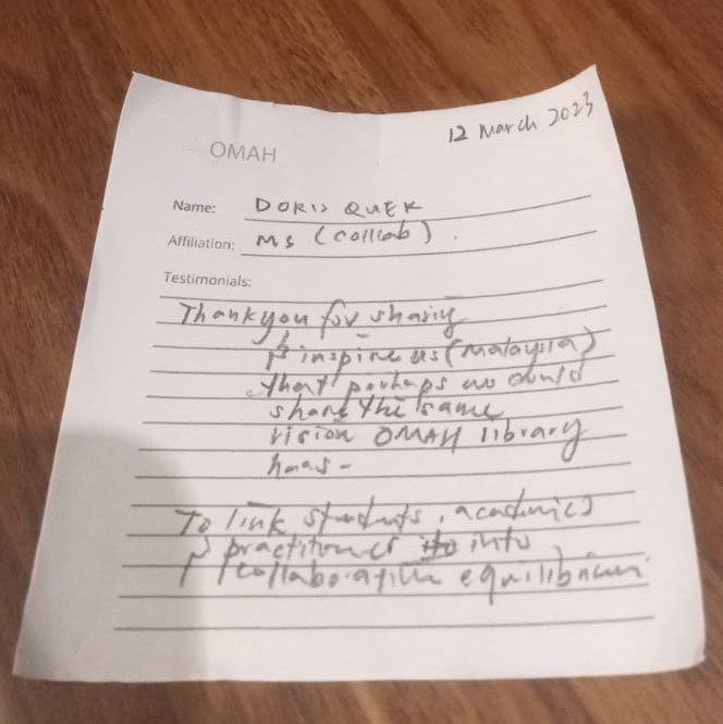 Thank you for sharing & inspire us (Malaysia) that perhaps we could share this same vision OMAH Library has. To link students, academics & practitioners into collaborative equilibration.