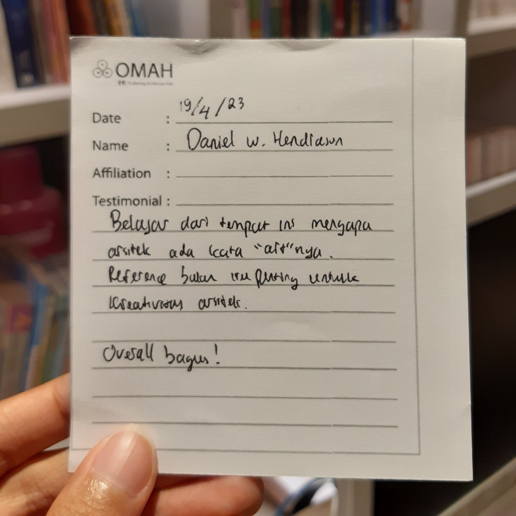 Belajar dari tempat ini mengapa aristek ada kata “art”nya refrence buku itu penting untuk kreativitas arsitek. Overall bagus!