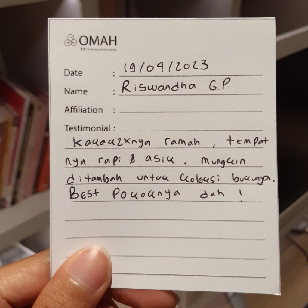 Kakak-kakaknya ramah, tempatnya rapih & asik, mungkin ditambah untuk koleksi bukunya. Best pokoknya dah!