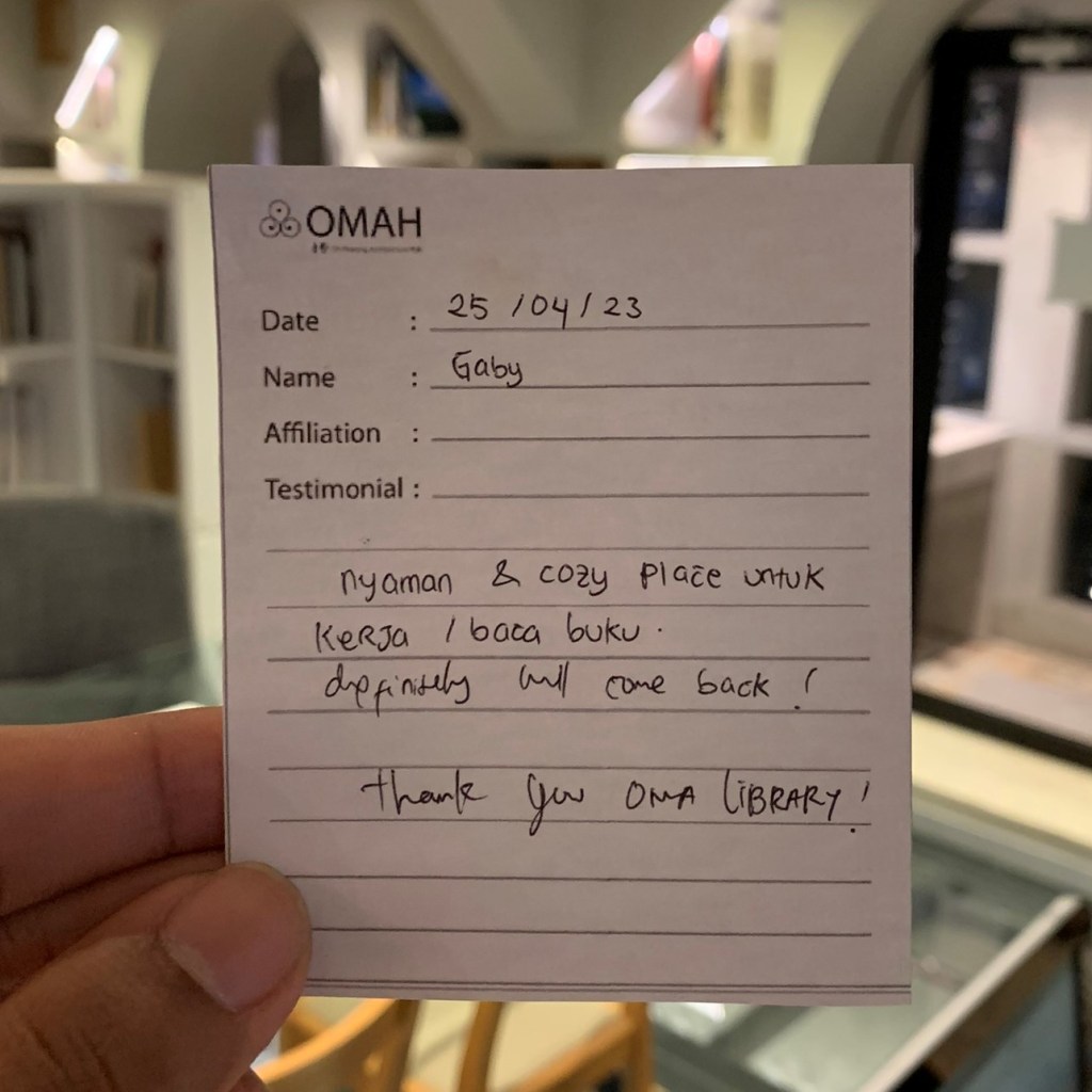 Nyaman & cozy place untuk kerja/baca buku. Definitely will come back! Thank you OMAH Library!