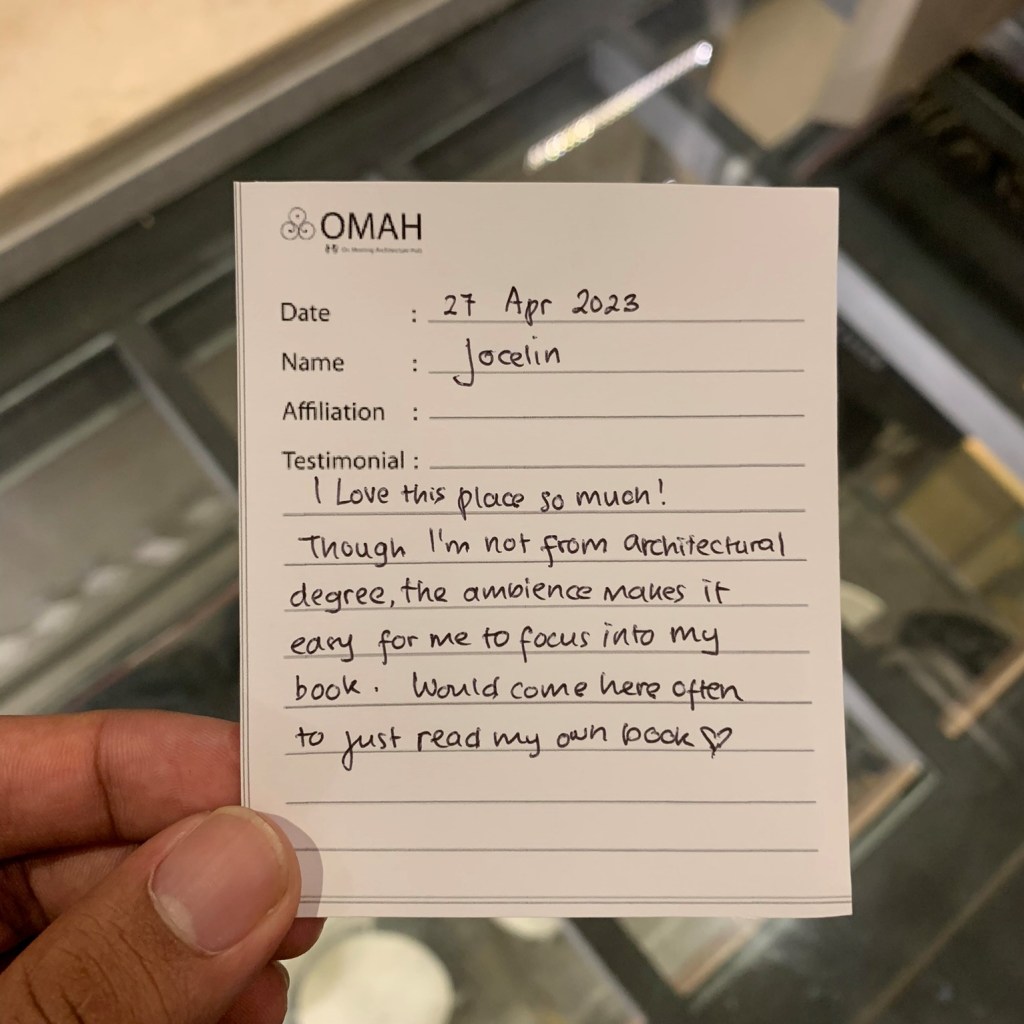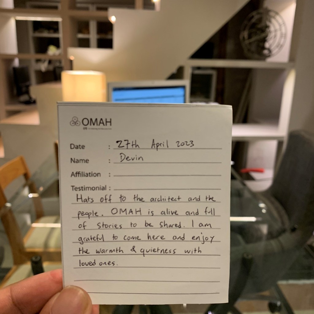 Hats off to the architect and the people. OMAH is alive and full of stories to be shared. I am grateful to come here and enjoy the warmth & quietness with loved ones.