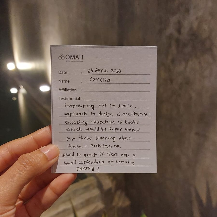 Interesting use of space, approach to design & architecture! Amazing collection of books which would be super useful for those learning about design & architecture. Would be great if there was a small coffee shop or usable pantry!