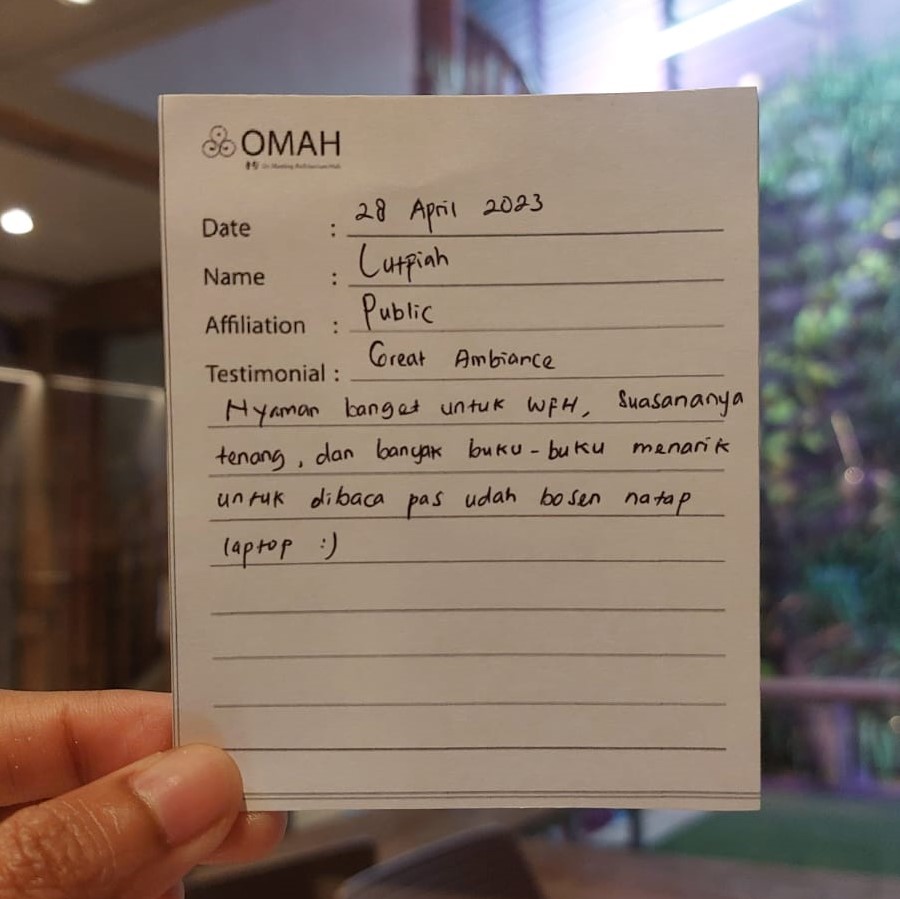Great ambience. Nyaman banget untuk WFH, suasananya tenang, dan banyak buku-buku menarik untuk dibaca pas udah bosen natap laptop.