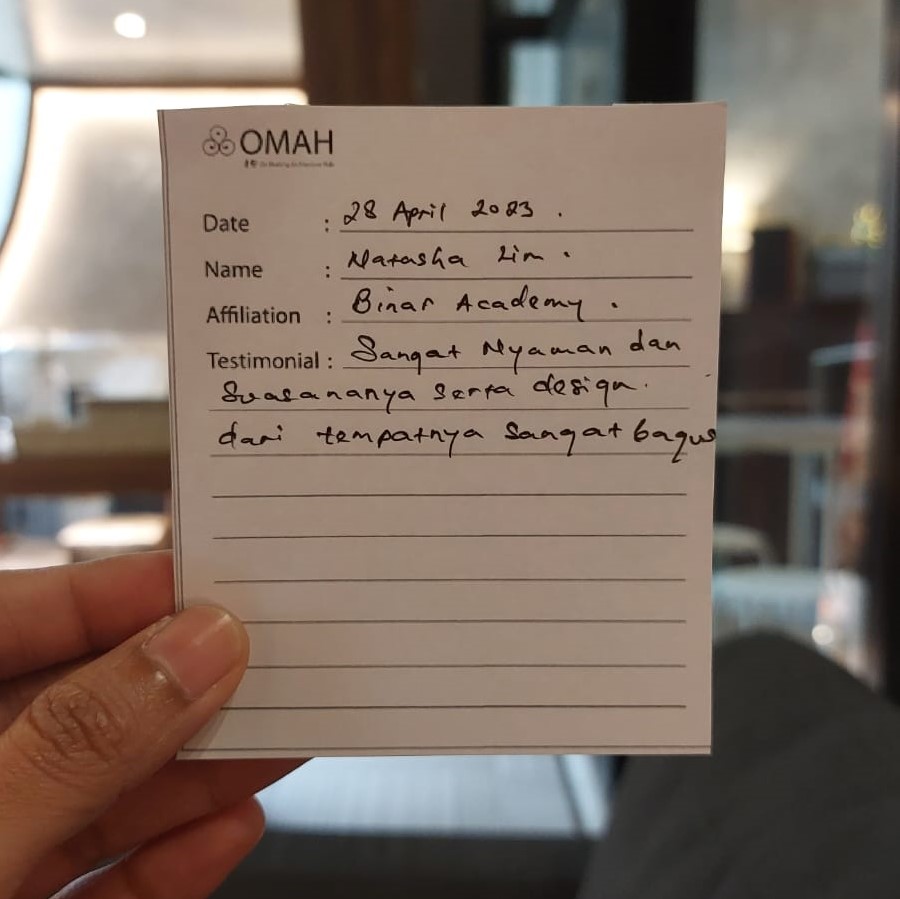 Sangat nyaman dan suasananya serta design dari tempatnya sangat bagus.
