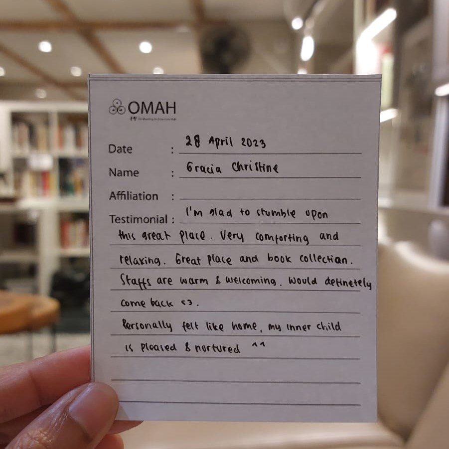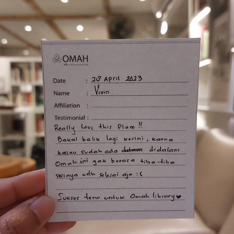 Really love this place! Bakal balik lagi kesini, karena kalau sudah ada didalam OMAH ini gak berasa tiba-tiba sesinya udah selesai aja. Sukses terus untuk OMAH Library.
