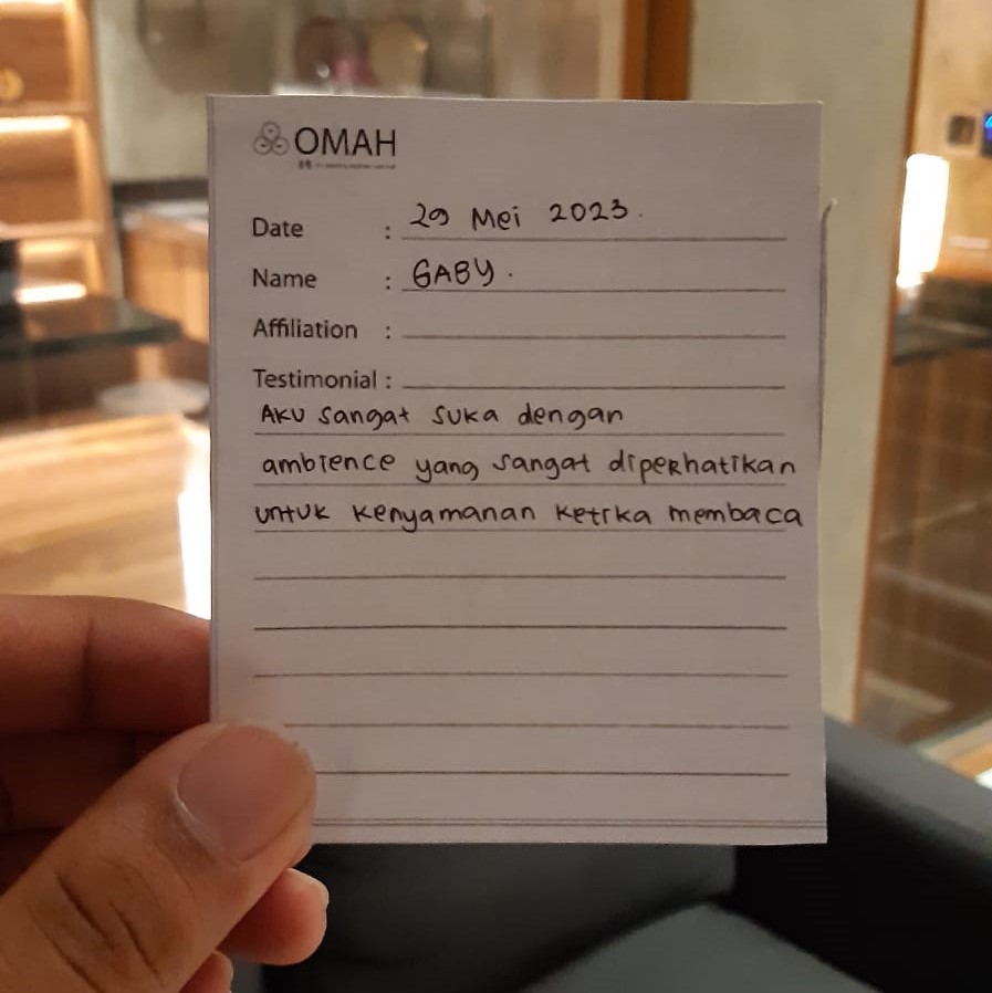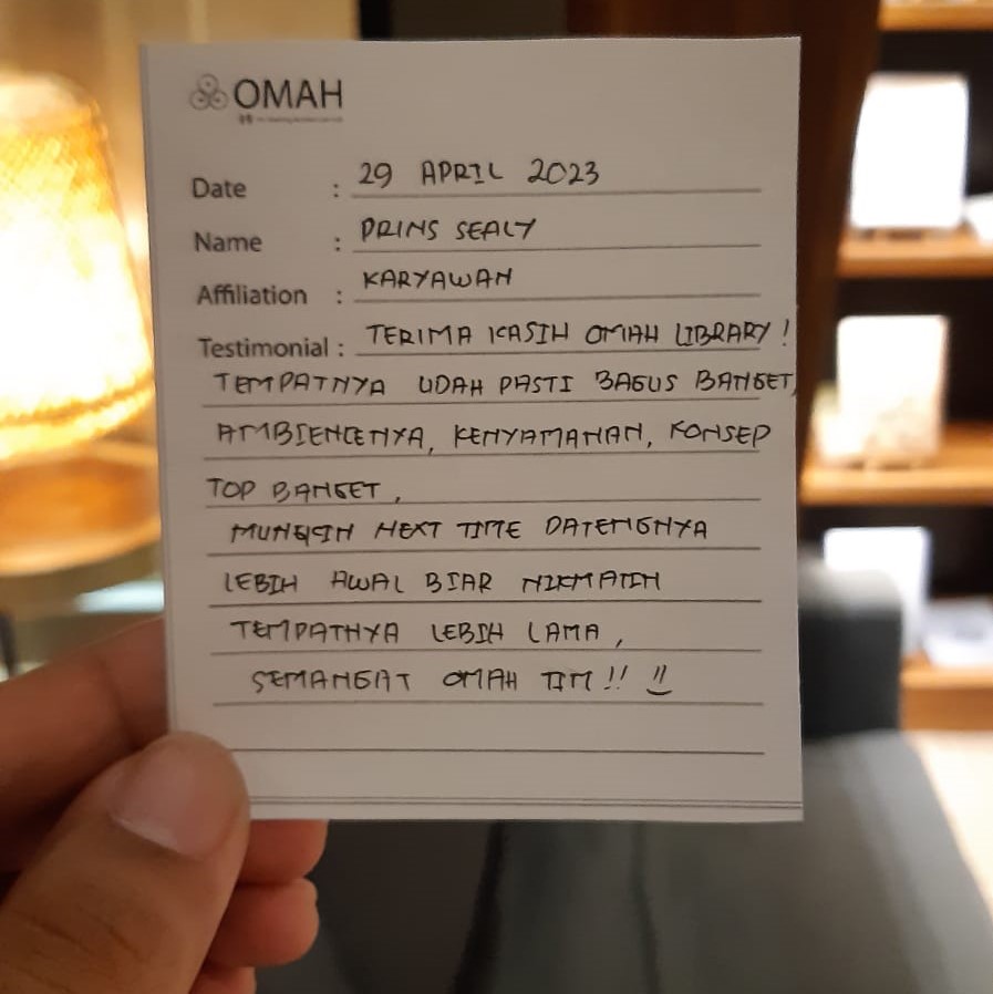 Terima kasih OMAH Library! Tempatnya udah pasti bagus banget, ambiencenya, kenyamanan, konseptop banget. Mungkin next time datengnya lebih awal biar nikmatin tempatnya lebih lama, semangat OMAH tim!