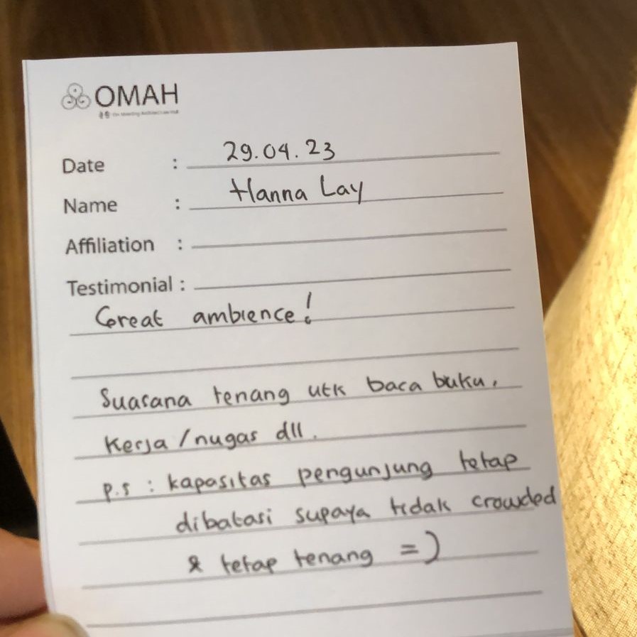 Great ambience! Suasana tenang untuk baca buku, kerja/nugas dll. P.S: Kapasitas pengunjung tetap dibatasi supaya tidak crowded & tetap tenang.