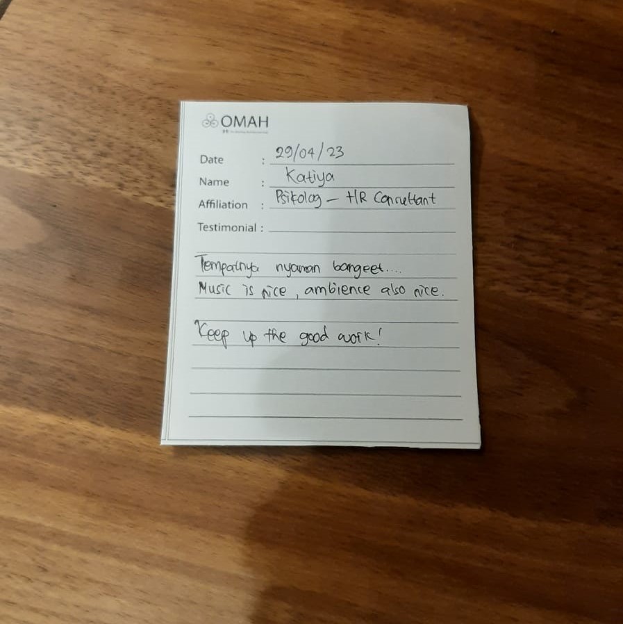 Tempatnya nyaman bangeet…. Music is nice, ambience also nice. Keep up the good work!