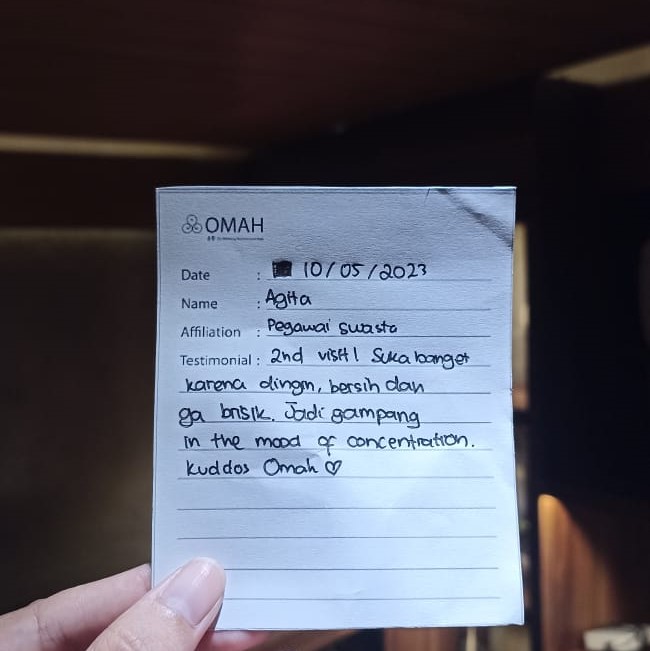 2nd visit! suka banget karena dingin, bersih dan ga berisik. Jadi gampang in teh mood of concentration kuddos OMAH ❤
