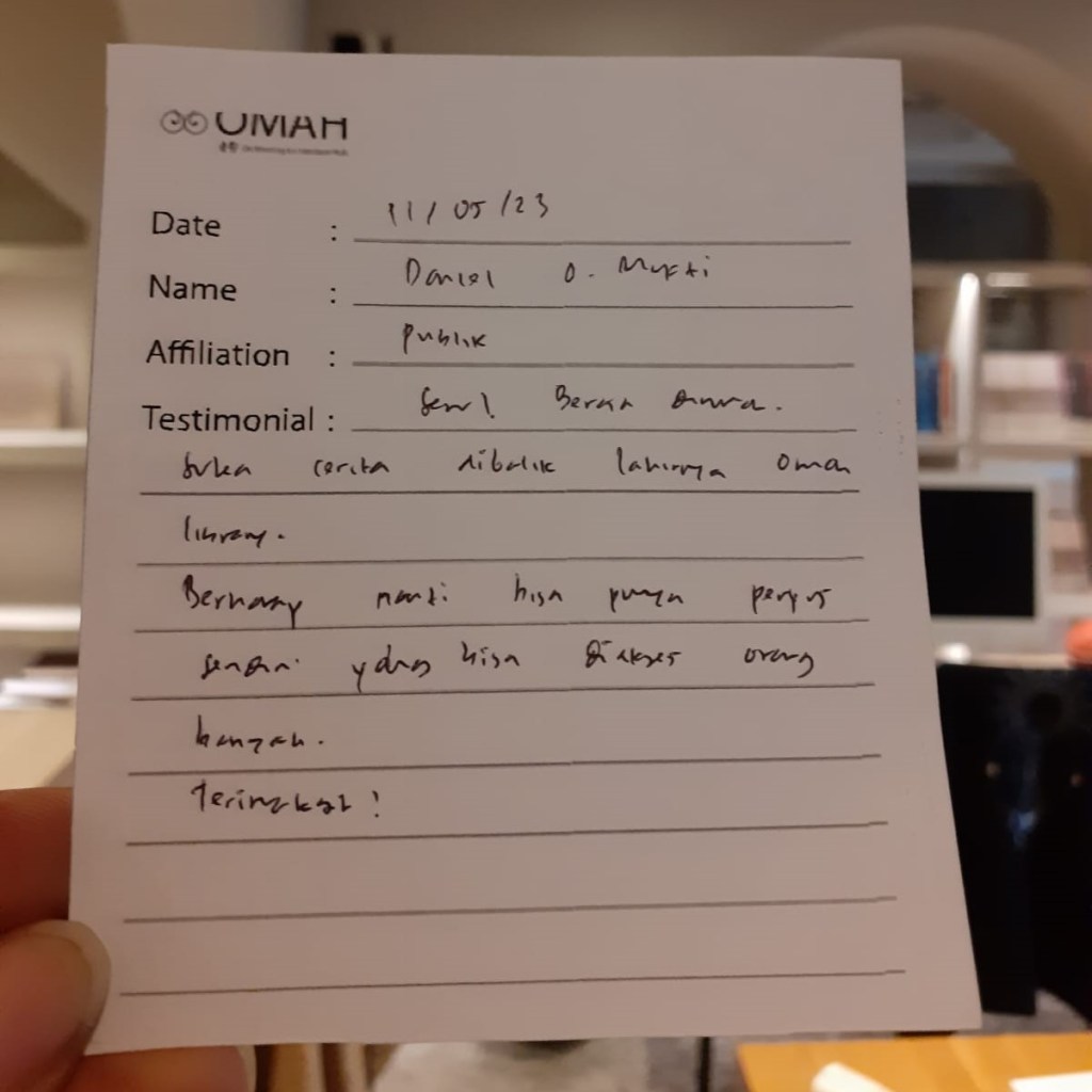 Seruh berasa dirumah, suka cerita dibalik lahirnya OMAH Library. Berharap nanti bisa punya perpus sendiri yang bisa diakses orang banyak. Terima kasih!