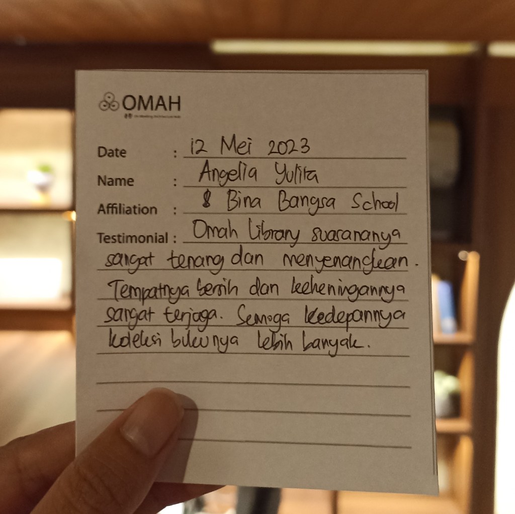 OMAH Library suasananya sangat tenang dan menyenangkan. Tempatnya bersih dan keheningannya sangat terjaga. Semoga kedepannya koleksi bukunya lebih banyak