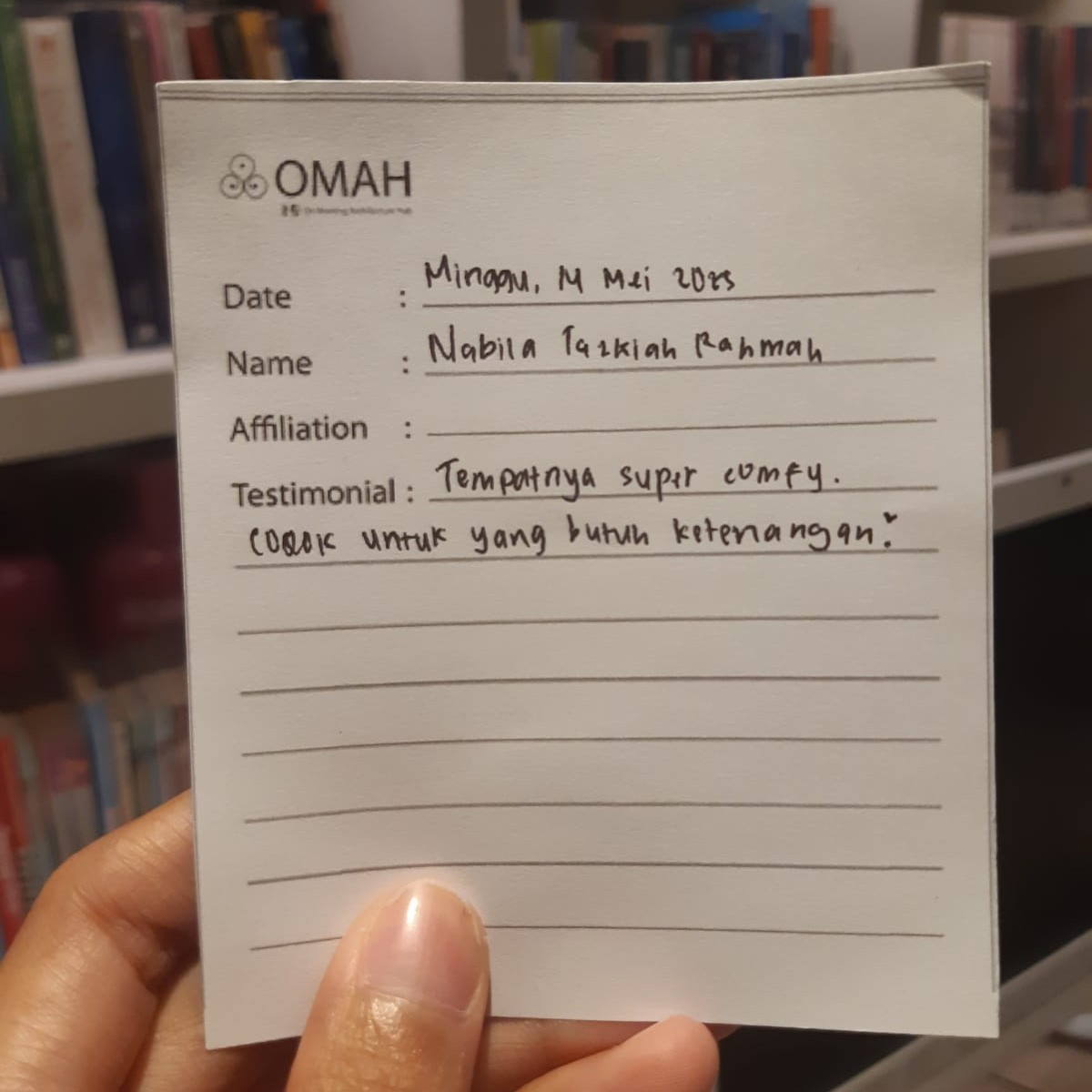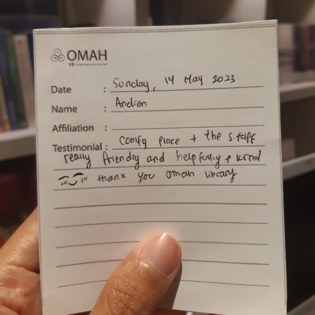 Comfy place + the staff really friendly and helpfully & kind ^^ Thank you OMAH Library.