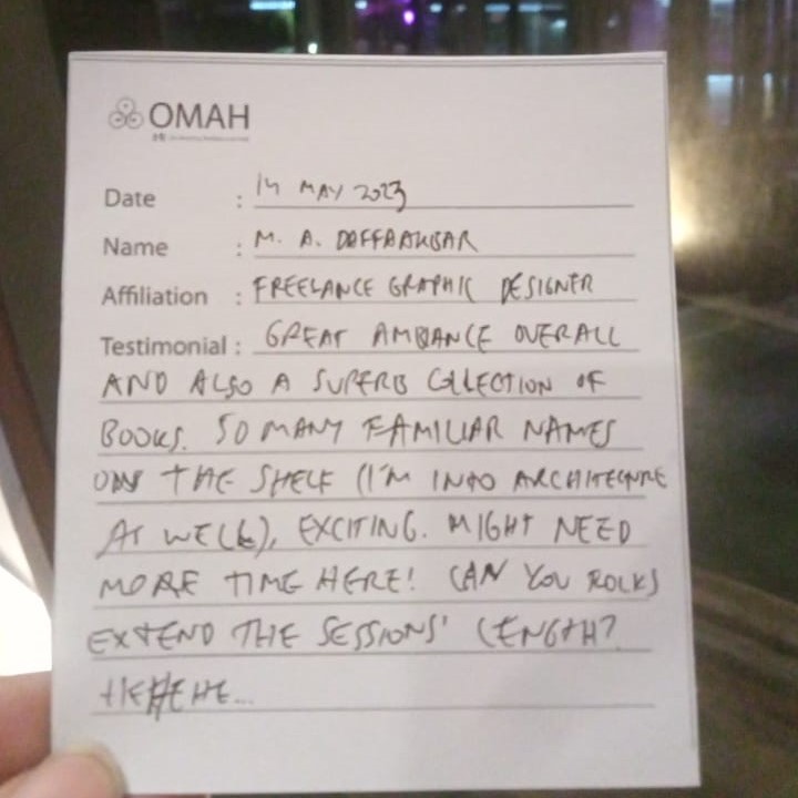 Great ambience overall and also a superb collection of books. So many familiar names on the shelf (I’m into architecture as well), exciting. Might need more time here! Can you rocks extend the sessions’ length? Hehehe…