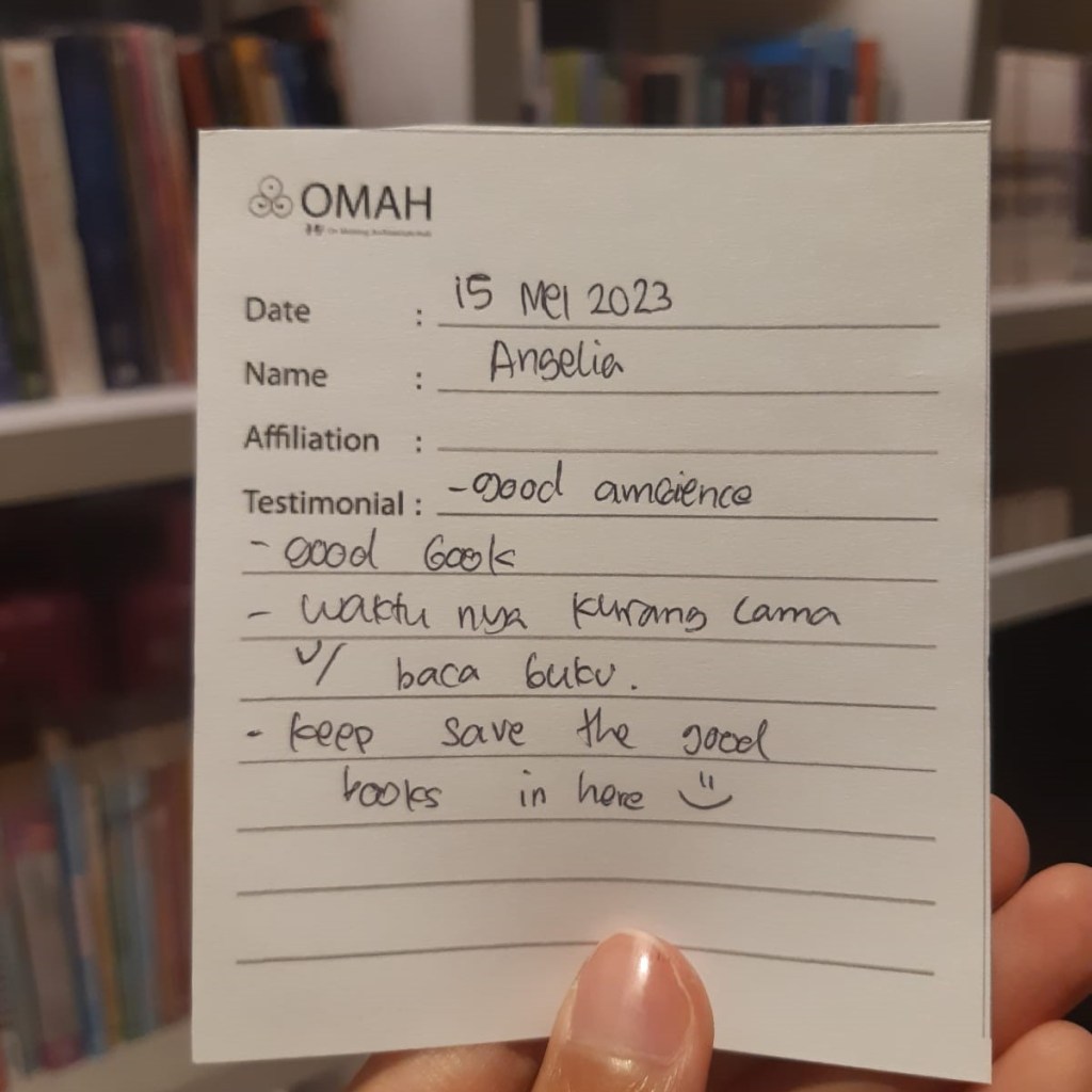 Angelia Permanai Posted byomahlibraryMay 15, 2023August 2, 2023Posted inblog Good ambience, Good book, waktunya kurang lama untuk baca buku. Keep save the good books in here 🙂Angelia Permana