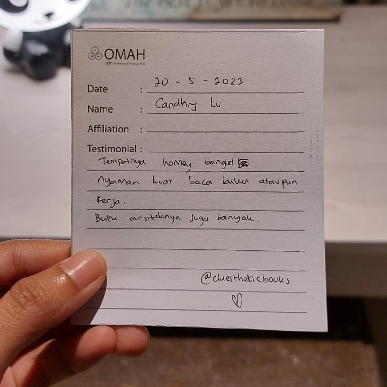 Tempatnye homey banget, nyaman buat baca buku ataupun kerja. Buku arsiteknya juga banyak.