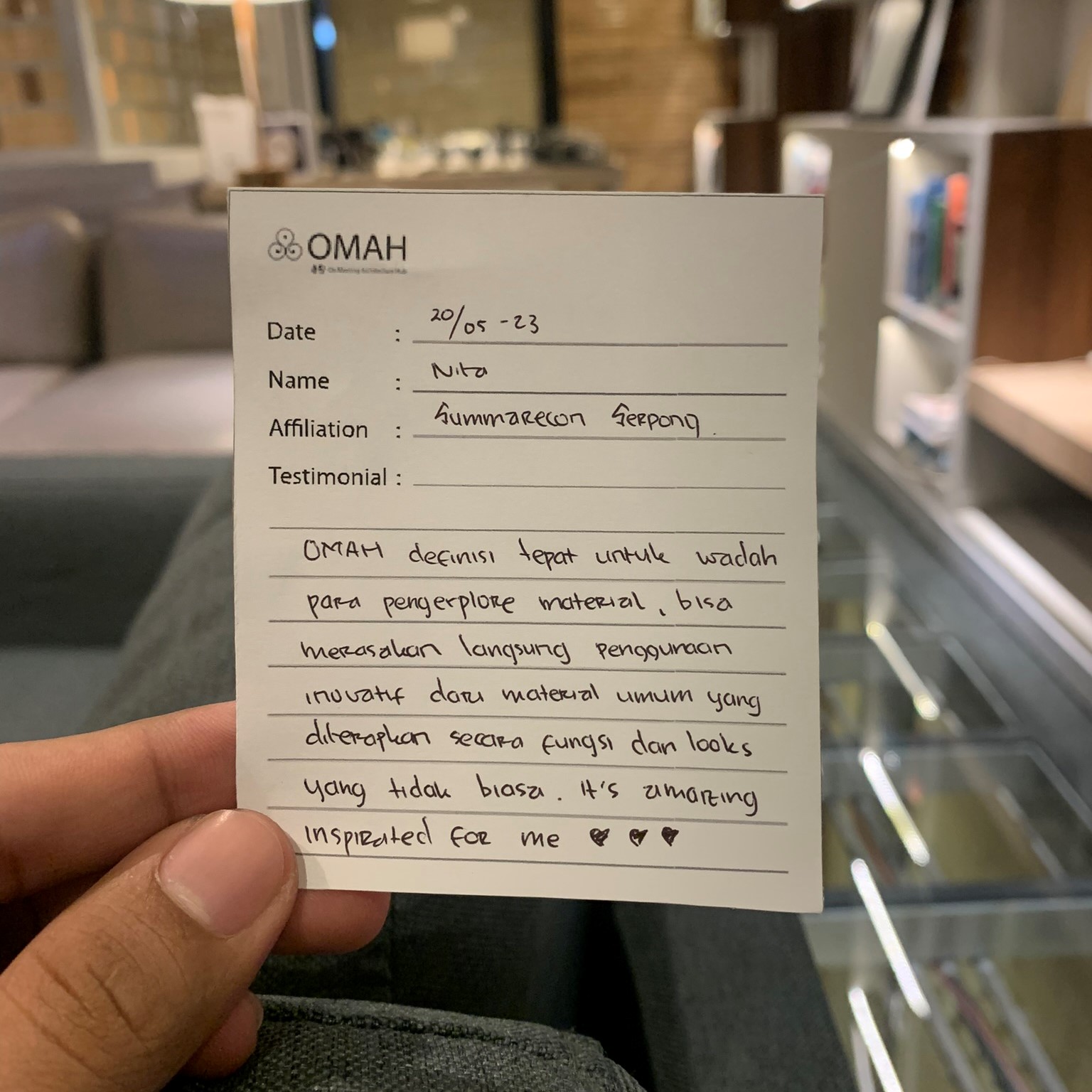 OMAH definisi tepat untuk wadah para pengexplore material, bisa merasakan langsung penggunaan inovatif dari material umum yang diterapkan secara fungsi dan looks yang tidak biasa. It’s amazing inspirated for me.
