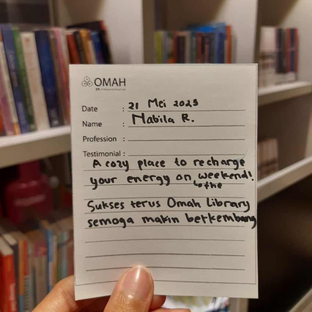A cozy place to recharge your energy in the weekend! Sukses terus OMAH Library. Semoga makin berkembang.