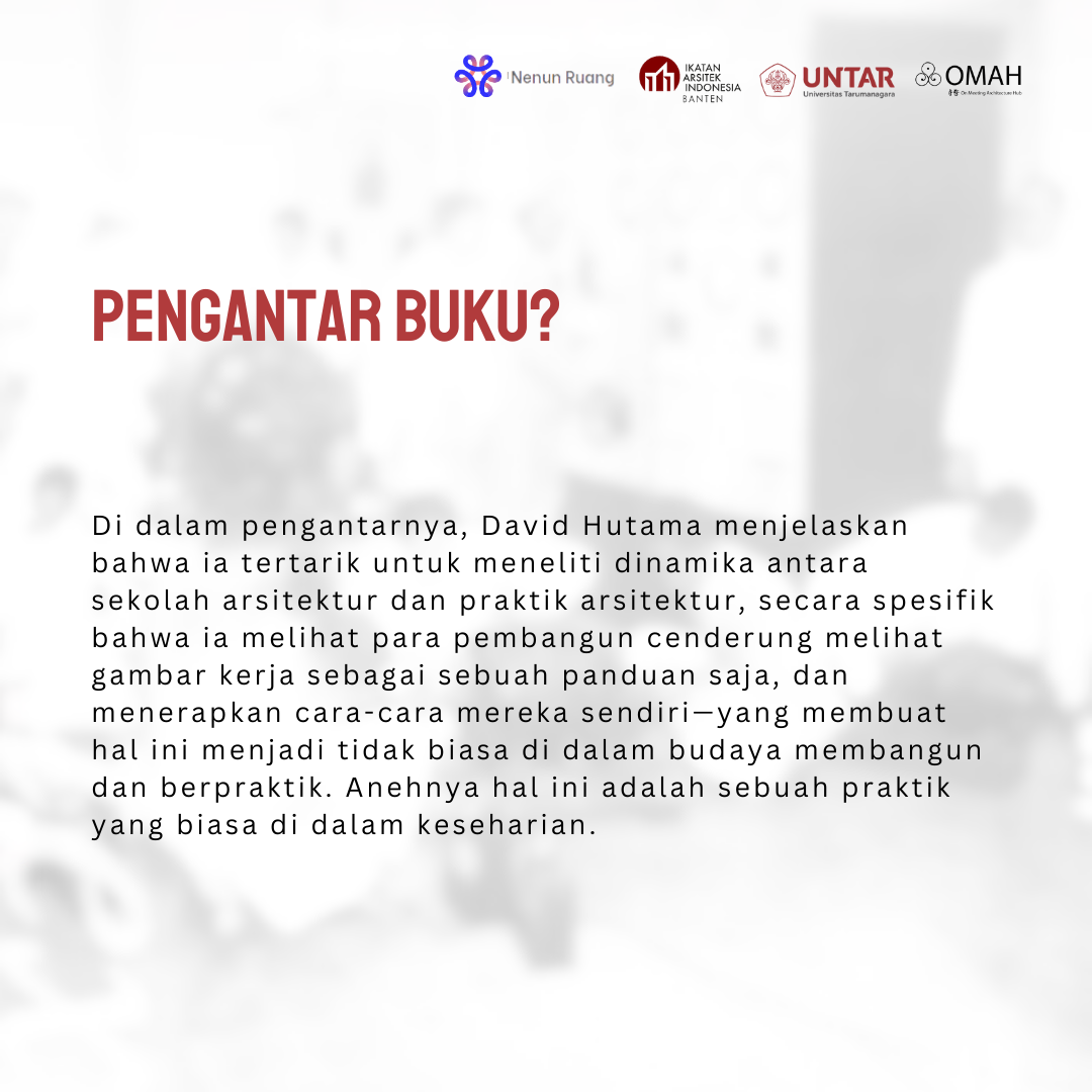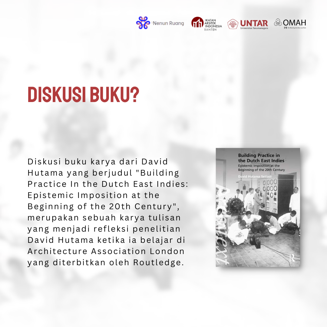 OMAH Library bersama Nenun Ruang, Universitas Tarumanagara, dan didukung IAI Banten dengan bangga mengadakan diskusi buku karya David Hutama berjudul “Building Practice in the Dutch East Indies: Epistemic Imposition at the Beginning of the 20th Century” terbitan Routledge, 2022—sebuah tulisan yang menjadi refleksi penelitian David ketika belajar di Architecture Association London.
