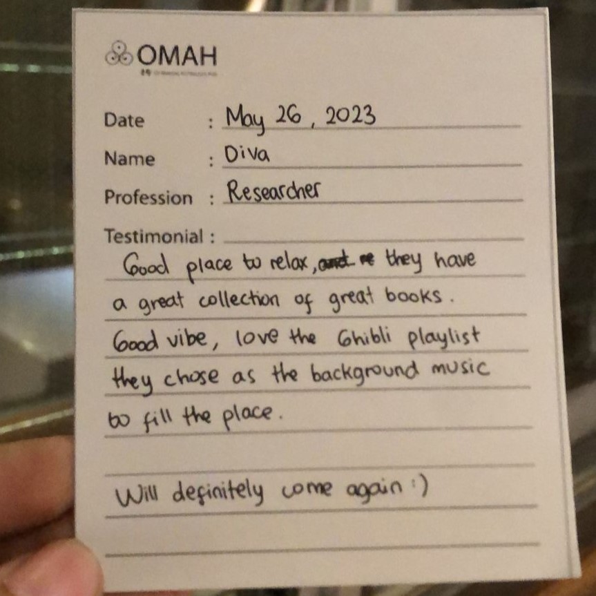 Good place to relax, they have a great collection of great books. Good vibes, love the Ghibli playlist they chose as the background music to fill the place.