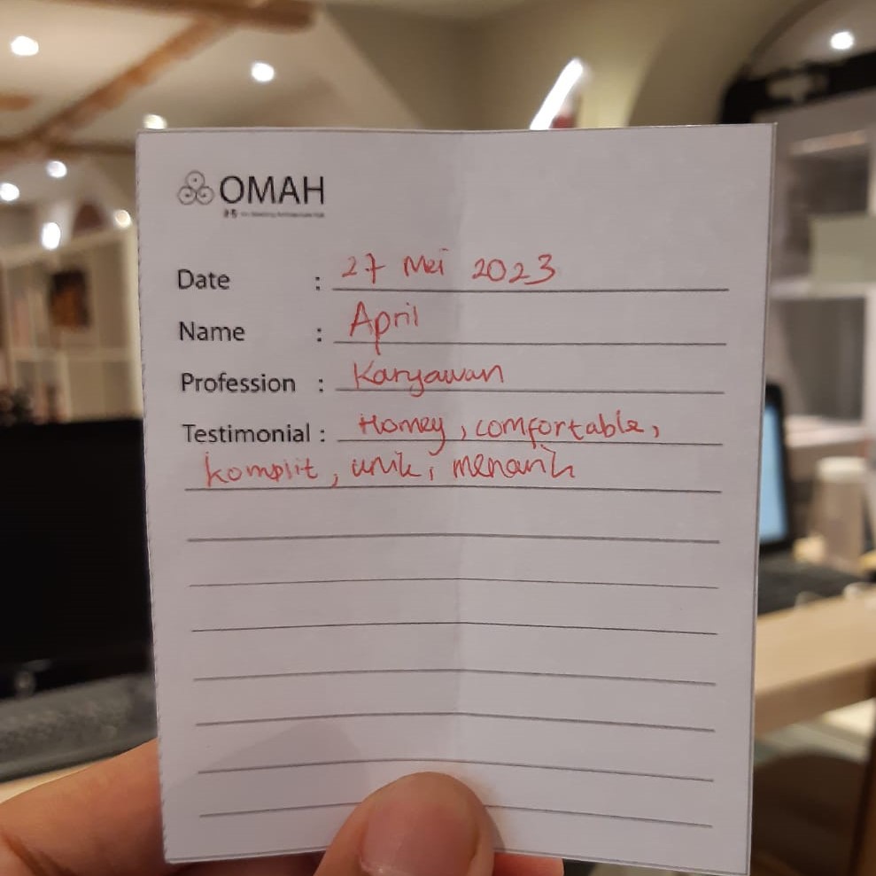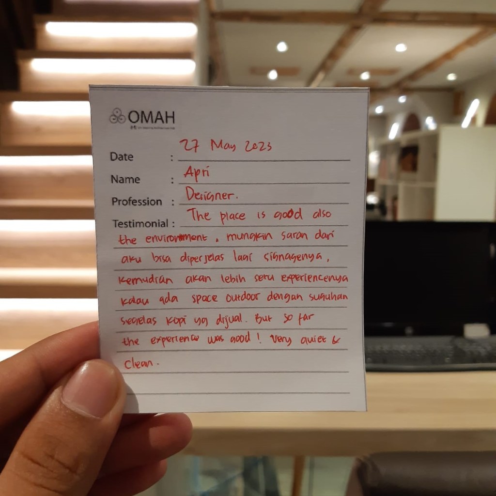 The place is good also the environment. Mungkin saran dari aku bisa di perjelas signagenya, kemudian akan lebih seru experiencenya kalau ada space outdoor dengan suguhan segelas kopi yang dijual. But so far the experience was goog! Very quiet and clean.