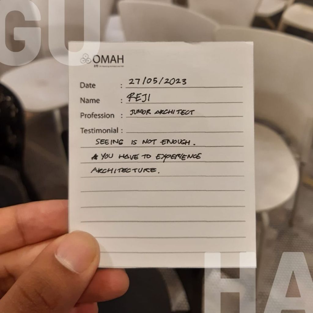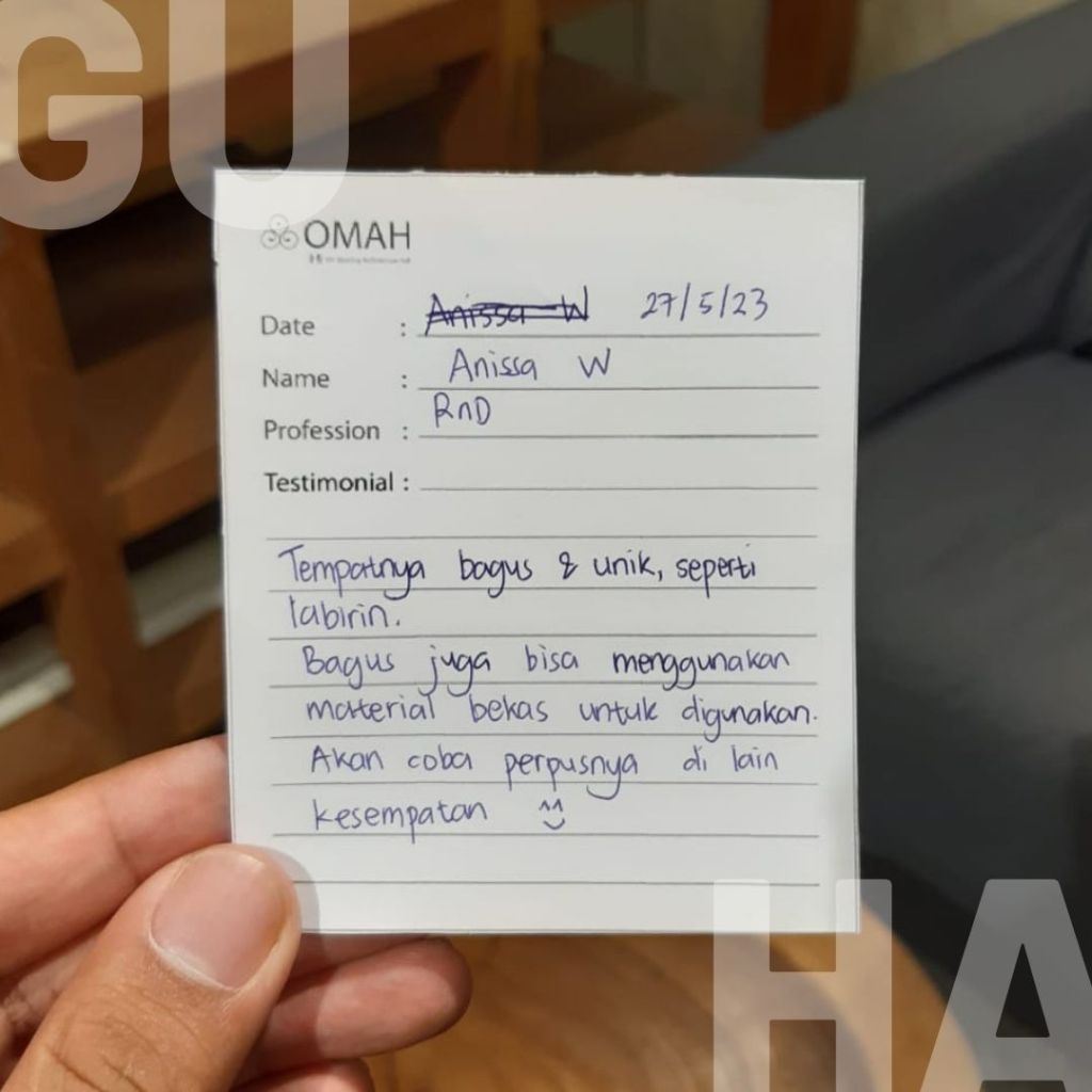 Berkunjung ke GUHA jadi sebuah pengalaman berarsitektur yang menyenangkan. Banyak ide-ide dan detail di setiap ruang yang memberi pengalaman berbeda. Material dan eksperimen yang ada juga sangat inovatif. Keren ❤ Next, bakal main kesini lagi! Sukses selalu ❤