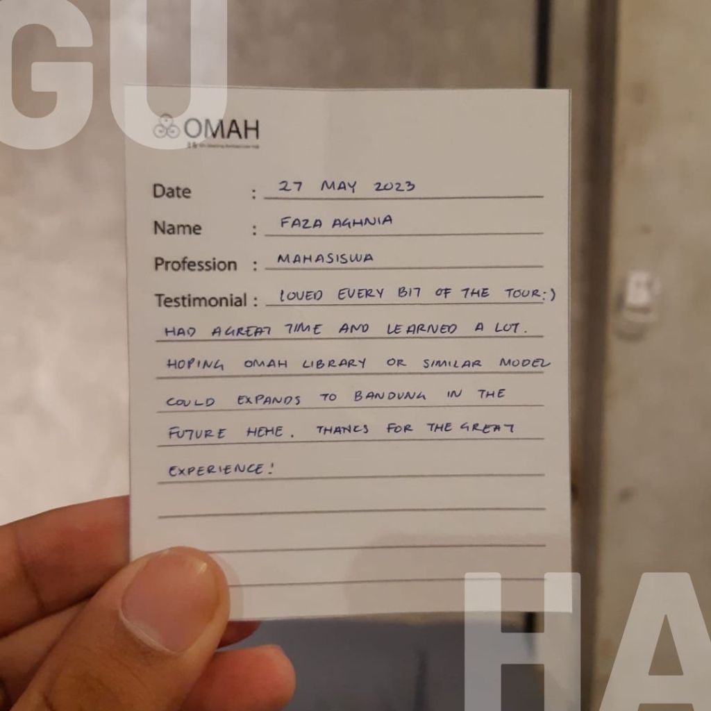 Loved every bit of the tour 🙂 had a great time and learned a lot. Hoping OMAH Library or similar model could expands to Bandung in the future hehe. Thanks for the great experience!