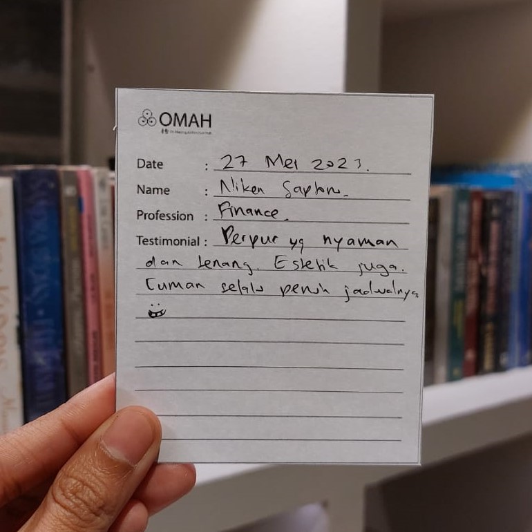 Rumahnya unik, estetis, banyak buku yang menarik juga. Suasananya nyaman banget buat baca buku.