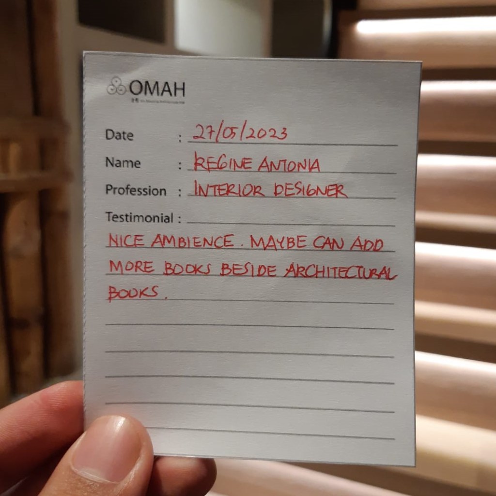 Nice ambience. maybe can add more books beside architectural books.