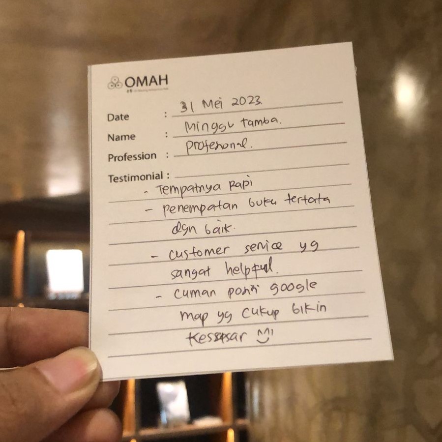 Tempatnya rapi, penempatan buku tertata dengan baik. Customer service yang sangat helpful. Cuman poisi google maps yang cukup bikin kesasar.